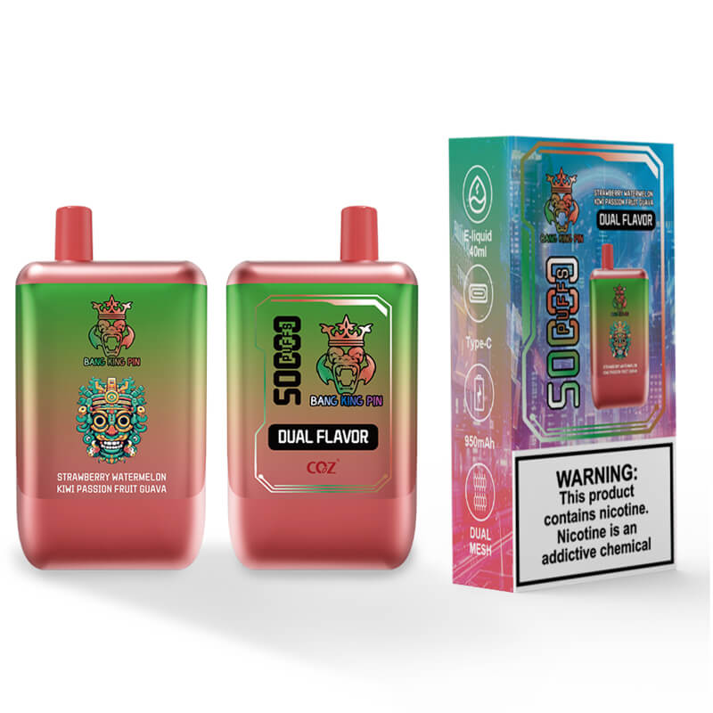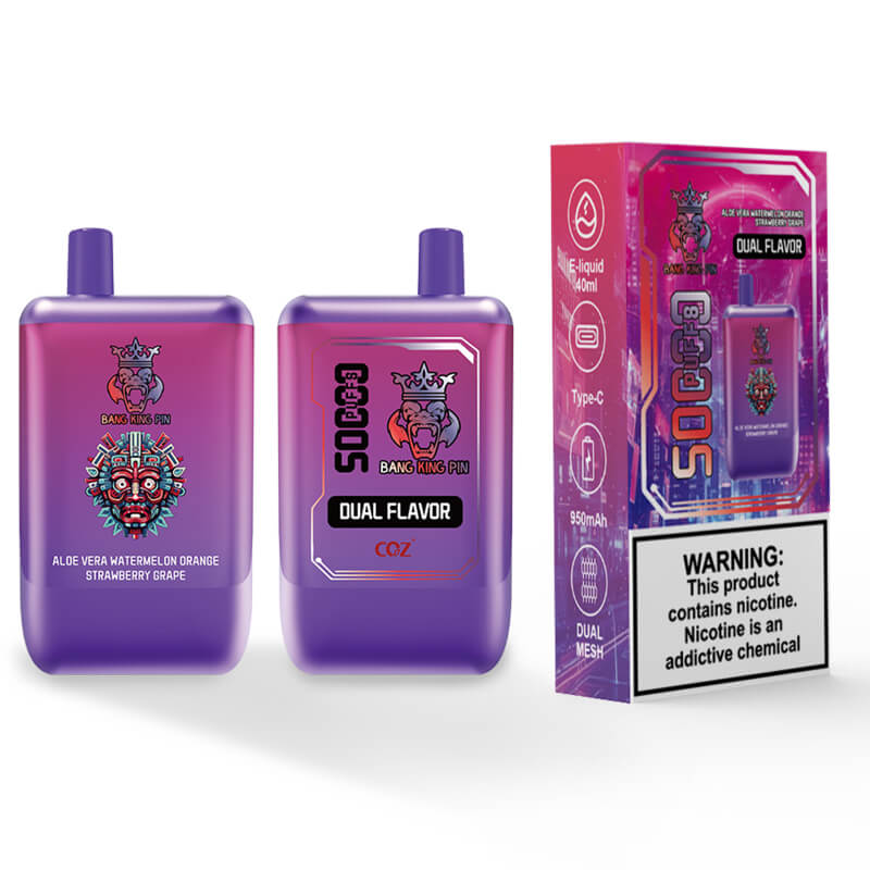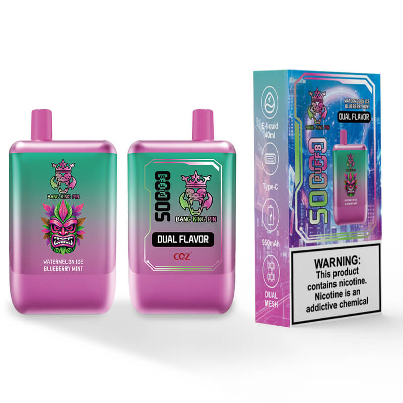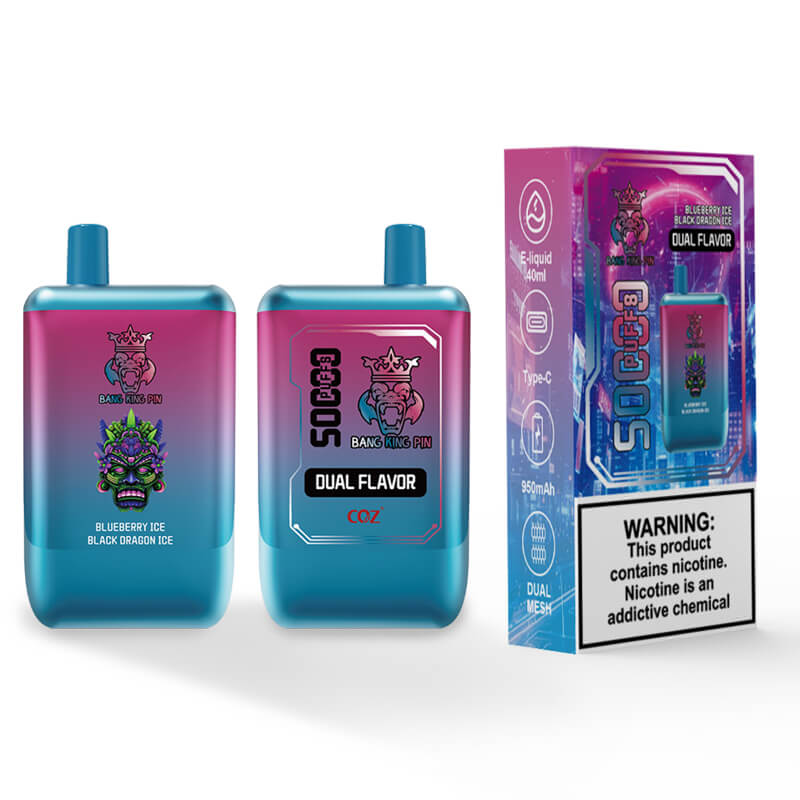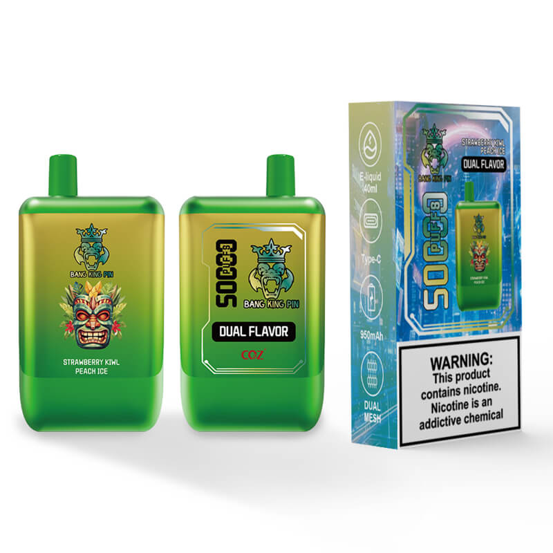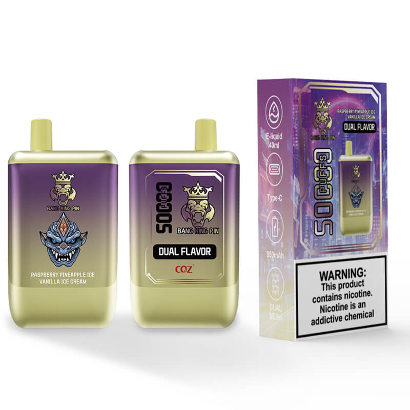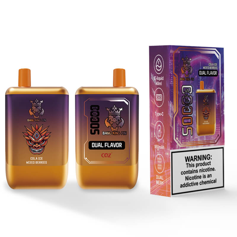 The Bang King Pin 50000 Disposable Vape is a high-capacity device designed for serious vapers who crave long-lasting performance and rich flavor experiences. Featuring a massive 40ml e-liquid reservoir and 950mAh rechargeable battery, it delivers up to 50,000 puffs with ease. The advanced Type-C fast charging ensures minimal downtime, keeping you ready to vape anytime.