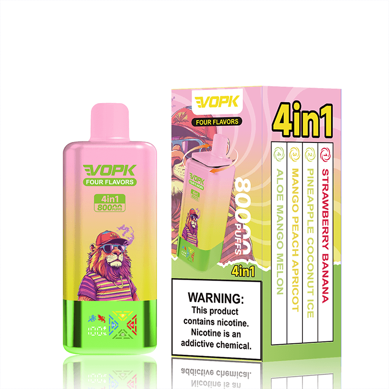 The VOPK 80K 4IN1 is a next-generation disposable vape offering unmatched variety and performance. Designed with a 4-in-1 tank system, it delivers four unique flavors in a single device, making it perfect for users who crave variety without carrying multiple vapes. With up to 80,000 puffs and a generous 40ml e-liquid capacity, this device is built for endurance. Powered by a 650mAh rechargeable battery and supported by a Type-C fast charging port, it ensures reliable power and quick recharging for all-day use.
